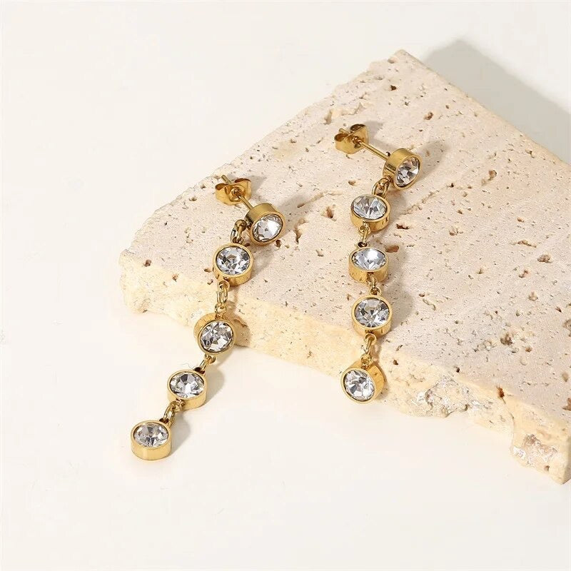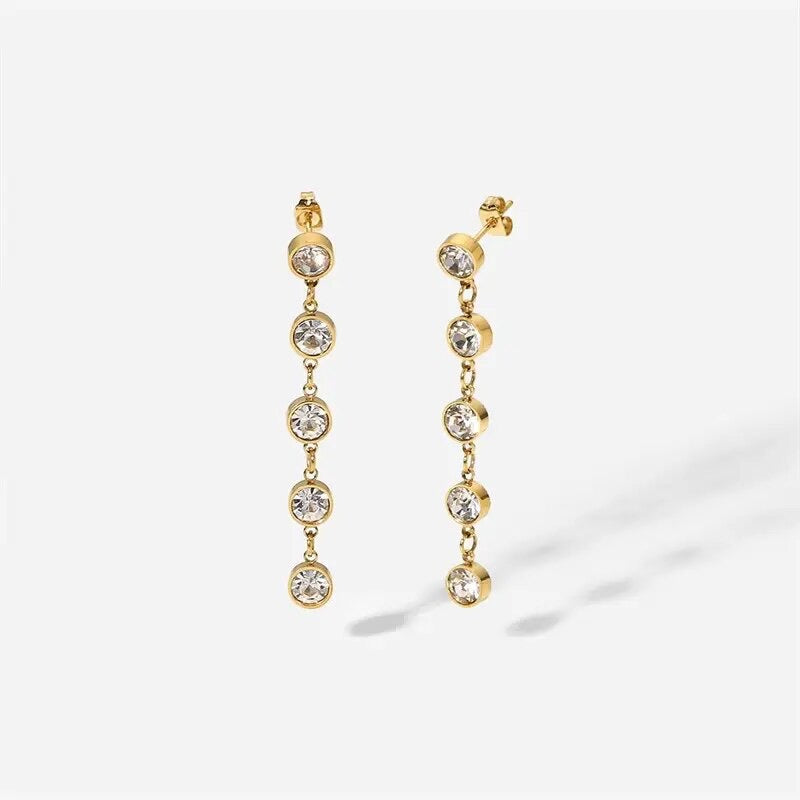 Gold Cubic Zirconia Elegant Drop Earrings