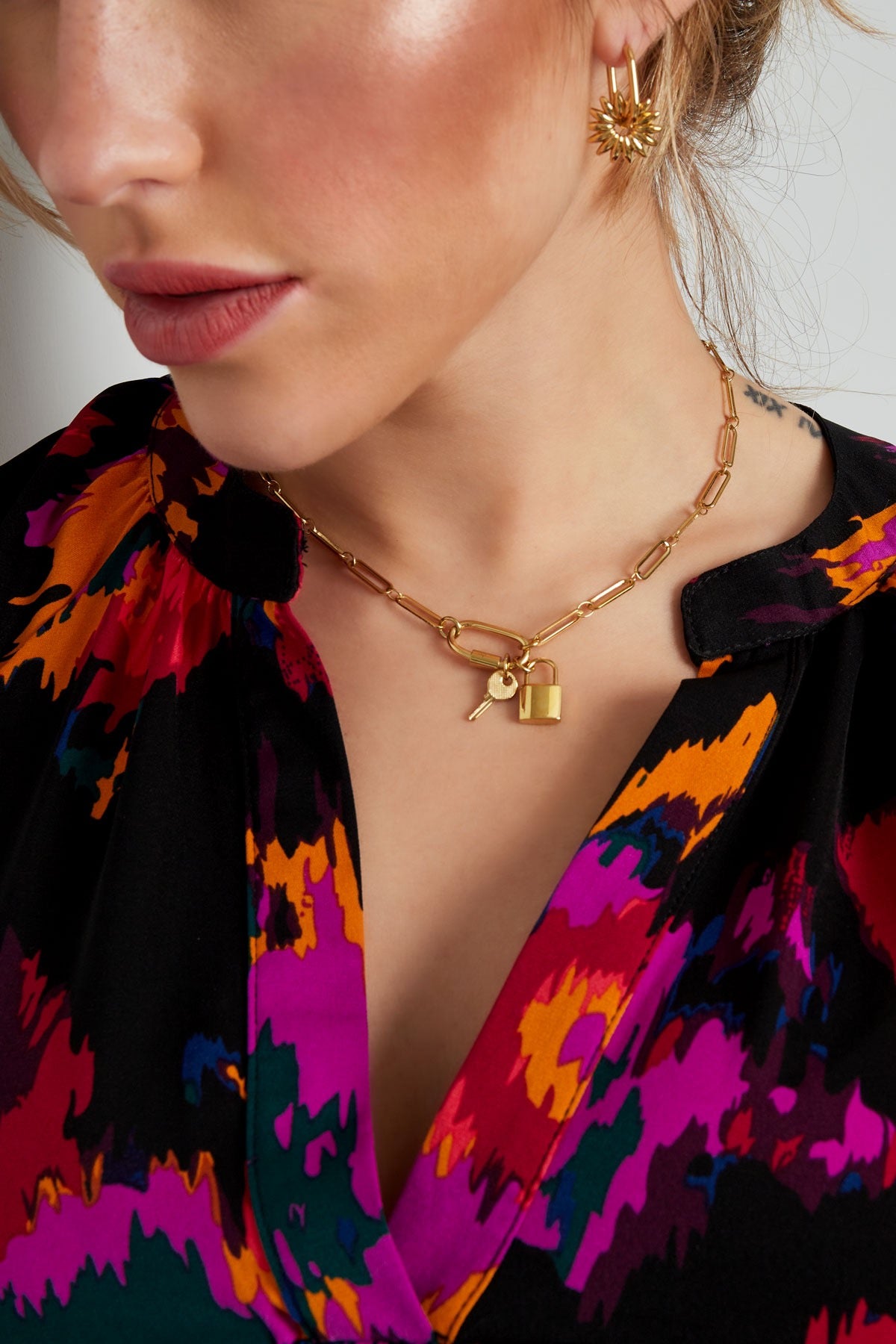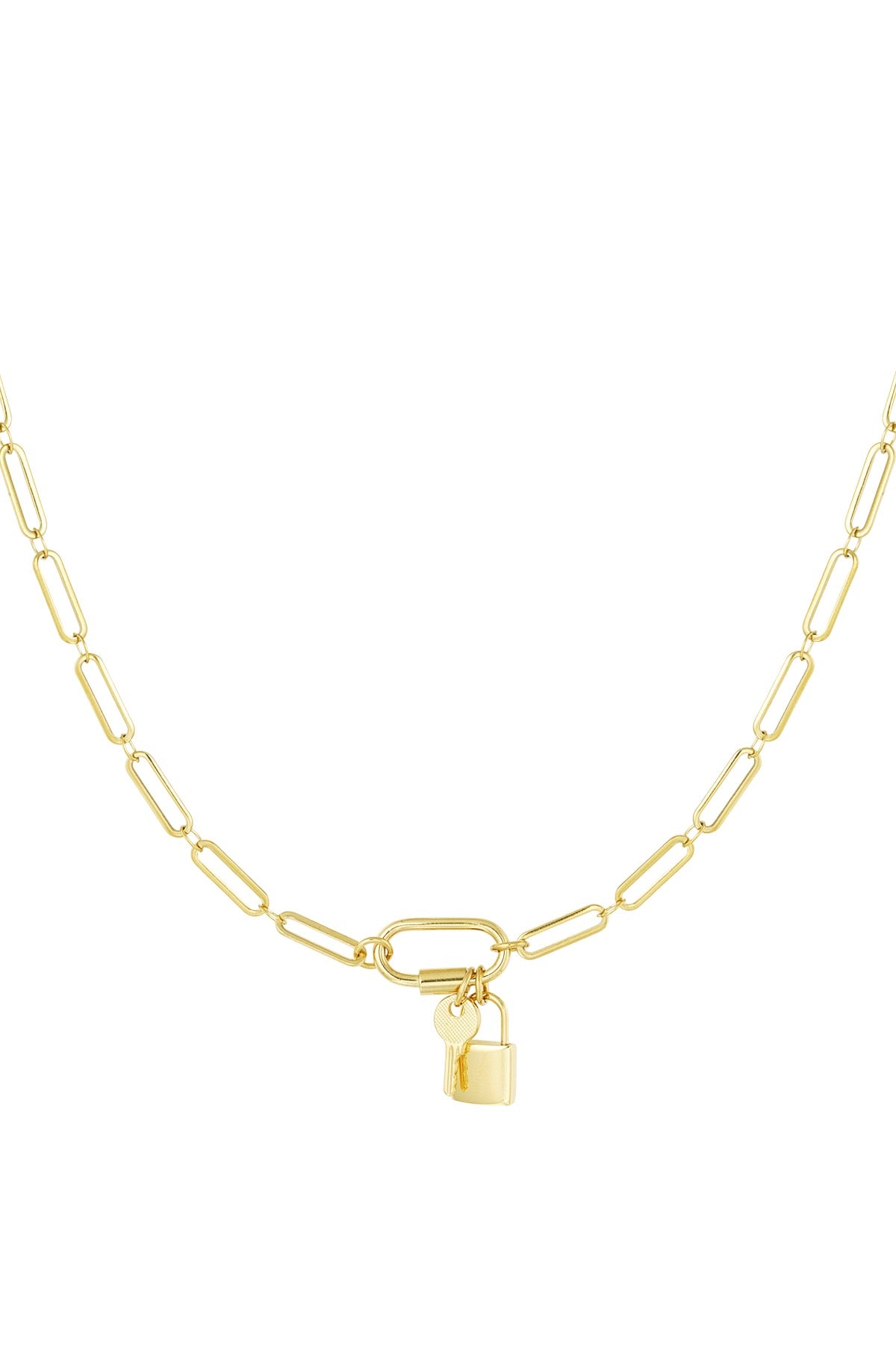 Padlock + Key Gold Paperclip Chain Necklace