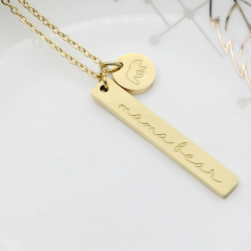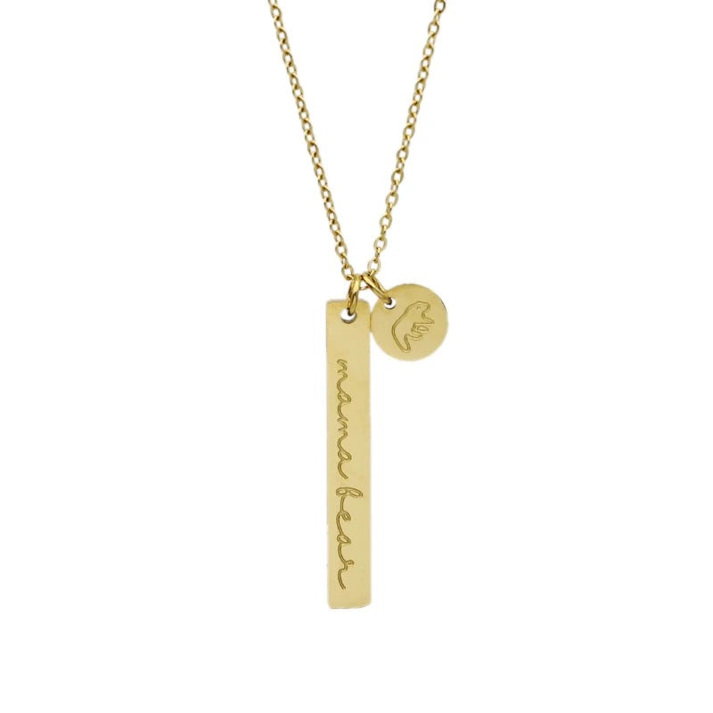 Mama Bear Engraved Gold Necklace