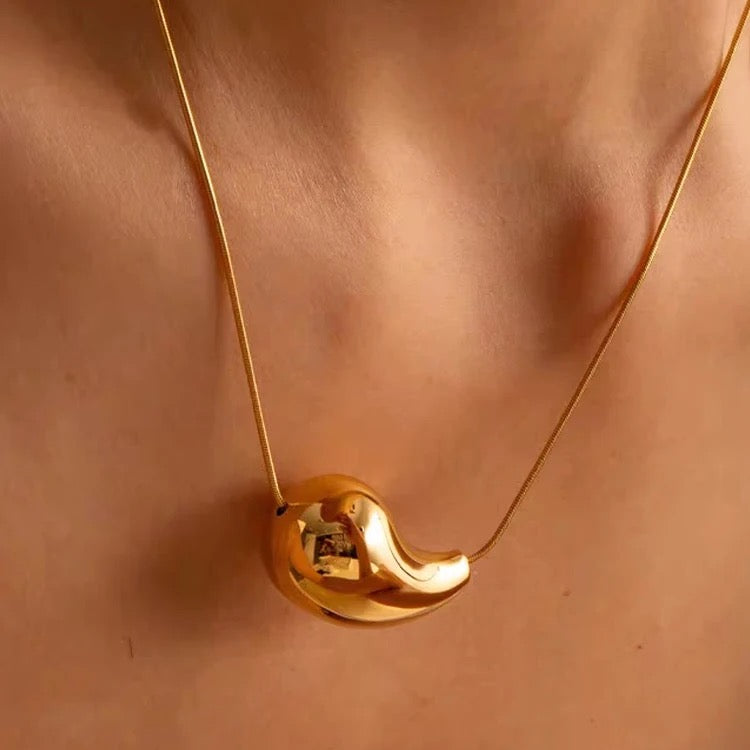 Gold Teardrop Pebble Pendant Necklace
