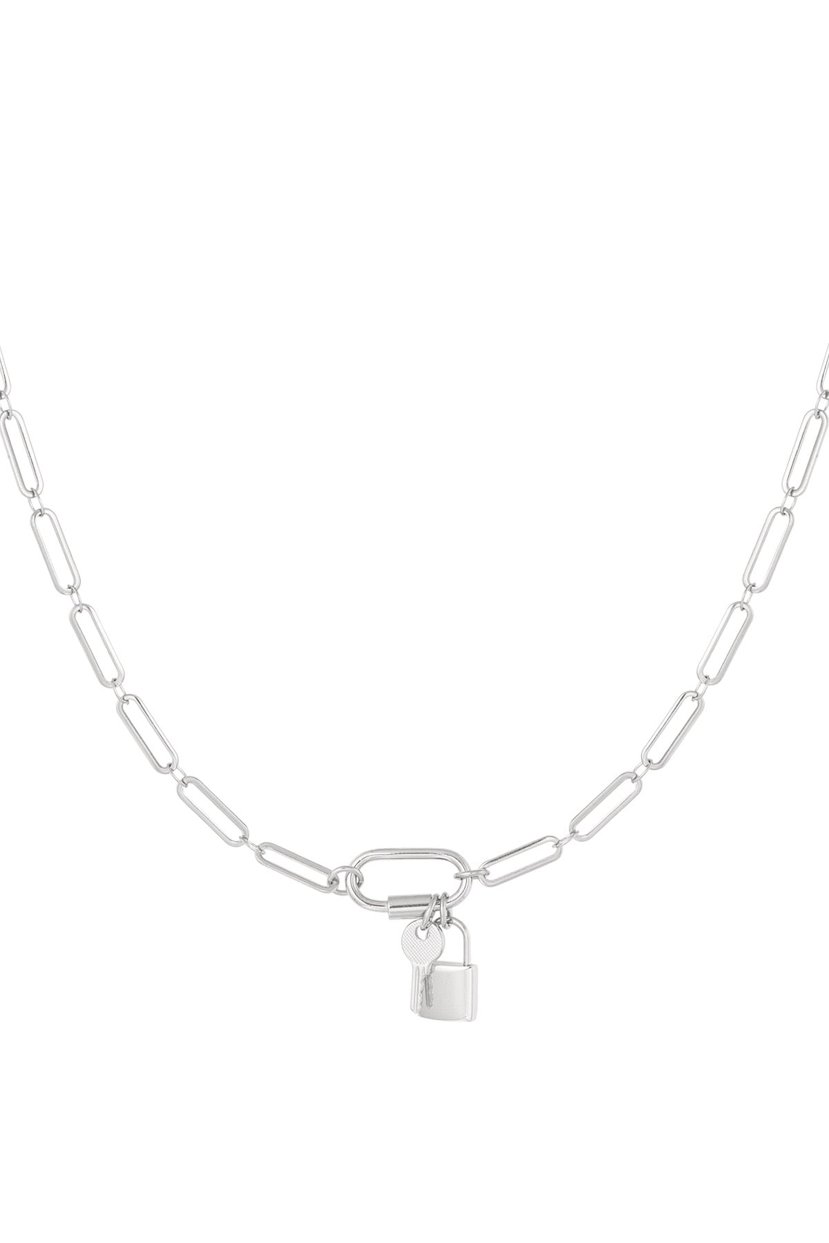 Padlock + Key Silver Paperclip Chain Necklace
